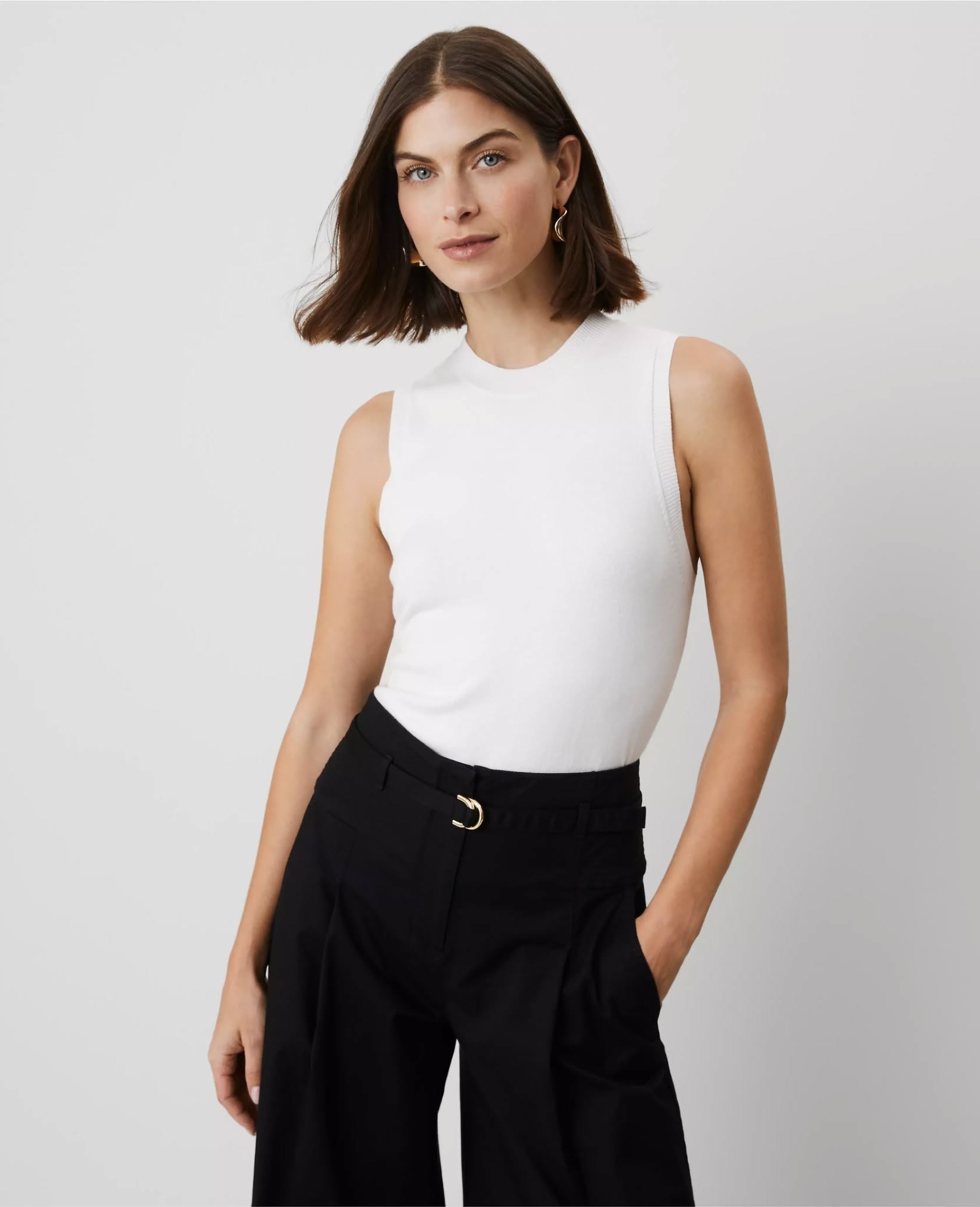 Một mảnh thiết yếu cho bất kỳ tủ quần áo nào, chiếc áo dệt kim mỏng mịn kiểu dáng không tay vừa vặn, hiện đại tối giản này rất linh hoạt để mặc một mình hoặc xếp lớp bên trong cardigan, áo khoác. Áo được Ann dệt kim từ sợi hỗn hợp Viscose mềm mại, với đường viền tay và gấu áo có gân. Softly fitted.
