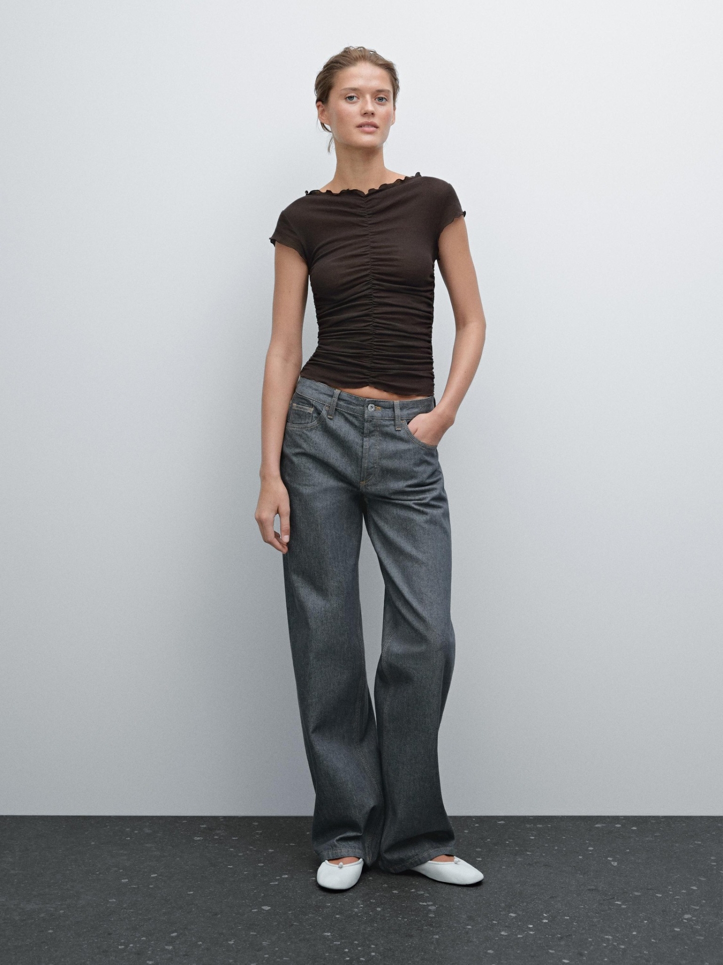 MDCTWGD01 MASSIMO DUTTI GATHERED DETAIL COTTON T-SHIRT