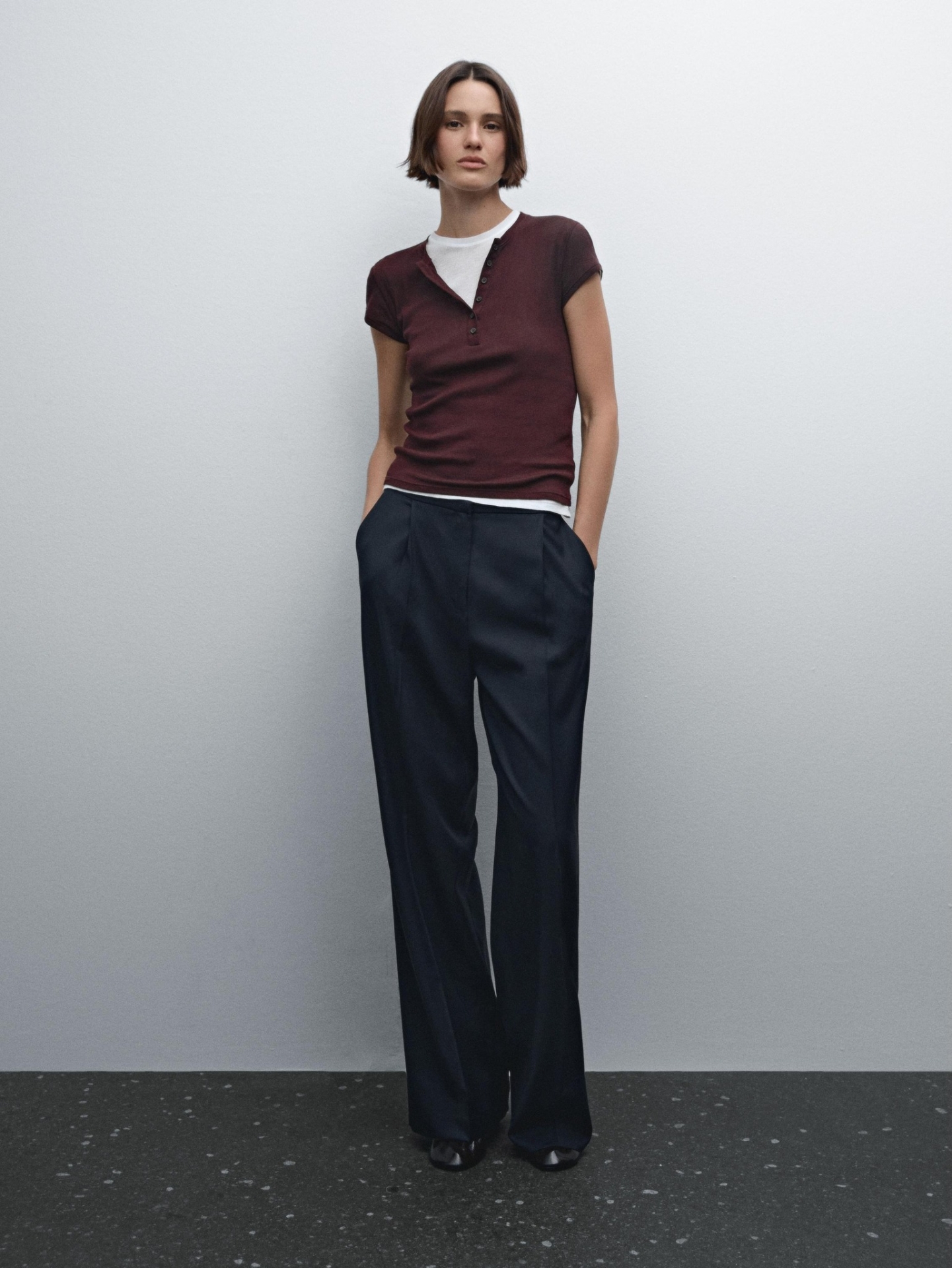 MDDCHT02 MASSIMO DUTTI DOUBLE-LAYER COTTON T-SHIRT