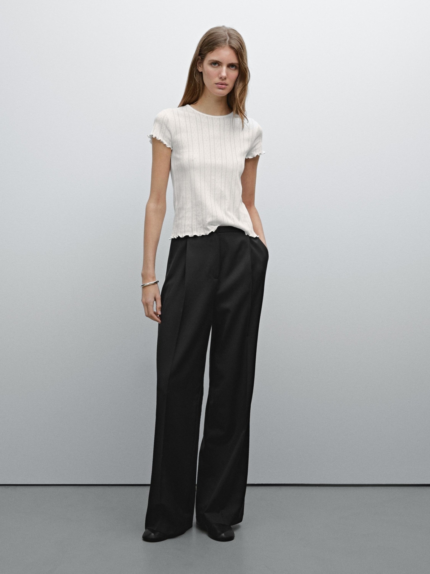 MDPOCT01 MASSIMO DUTTI POINTELLE OPENWORK COTTON T-SHIRT