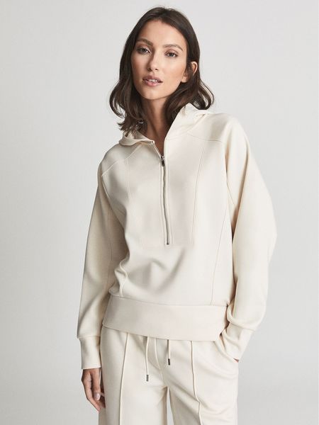 Cập nhật bộ sưu tập trang phục giải trí của bạn trong mùa mới này bằng chiếc áo hoodie màu trắng kem xinh đẹp nhà Reiss. Được chế tác từ sự pha trộn mịn của Polyester Viscose sang trọng để mang lại cảm giác mềm mại thoải mái khi mặc, và được hoàn thiện bằng đường viền cổ áo có khóa kéo tương phản, một cách hoàn hảo để thêm thắt nét phóng khoáng cho diện mạo của bạn. Mặc nó nhiều lớp dưới áo khoác ngoài và quần jean ôm vừa vặn. Nó cũng đặc biệt phù hợp khi lớp dưới áo dạ choàng, trenchcoat over, kết hợp giày bốt tùy Outfit cho vẻ ngoài hiện đại, thoải mái đầy cá tính.